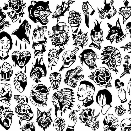 В стиле с множеством маленьких татуировок существуют множество популярных мотивов: