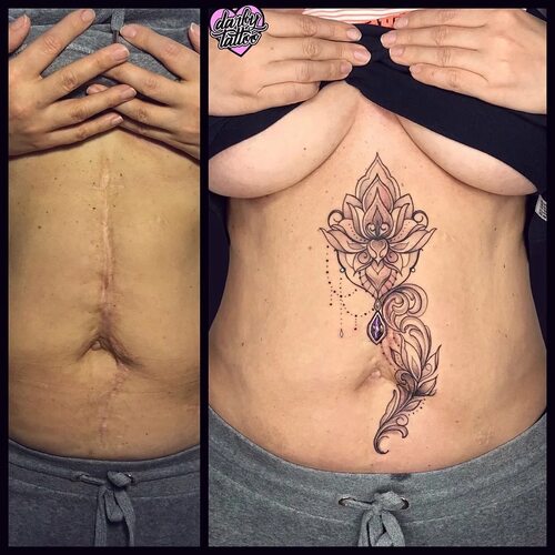 Для многих женщин шрам на животе может стать источником комплексов и неудовлетворенности своим внешним видом. Татуировка на животе на шраме может помочь скрыть этот дефект, сделав его менее заметным и придавая животу новый, красивый вид.