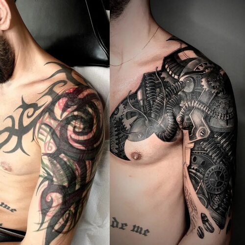 Биомеханический стиль татуировок объединяет элементы механики и органики. Он изображает различные механизмы, кабели, провода и другие детали в сочетании с частями тела, кости и мышц. Биомеханические татуировки создают впечатление, будто кожа открывает вид на внутреннюю машинерию.