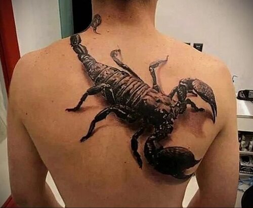 Реалистичные татуировки скорпионов на спине мужчин выглядят очень впечатляюще и детализированно. Они могут быть выполнены с использованием черно-белой или цветной техники, а некоторые мастера добавляют в дизайн дополнительные детали, чтобы придать татуировке еще больше выразительности.