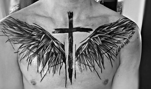 Фотографии татуировок мужских крыльев с крестом на спине