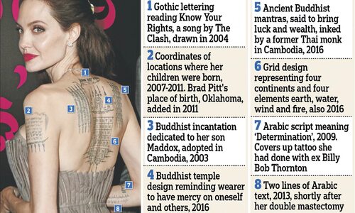 Татуировки всегда были популярным способом самовыражения, и знаменитости часто используют их, чтобы выразить свою индивидуальность и персональную историю. Одной из самых известных и символичных татуировок звездного мира является татуировка Анджелины Джоли на спине.