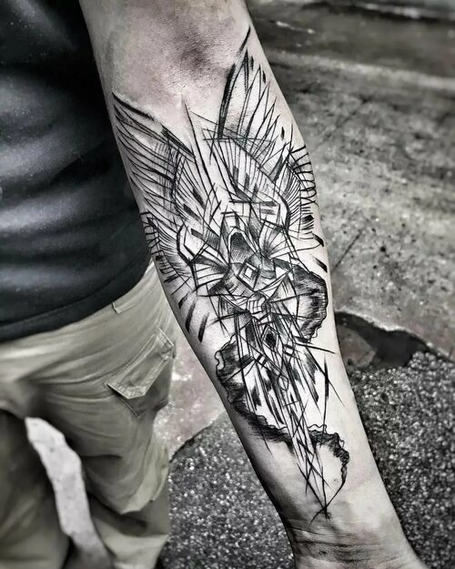 Геометрические татуировки на предплечье отличаются смелыми и сложными геометрическими узорами и линиями. Они могут быть абстрактными или геометрическими формами, создавая гармоничное и симметричное изображение на вашей коже.