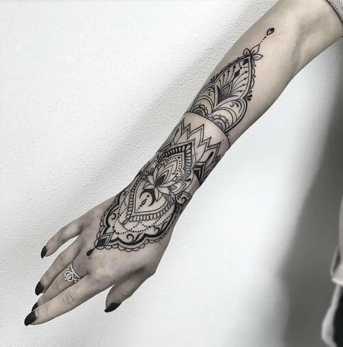 Геометрические узоры набирают все большую популярность в мире татуировок. Их преимущество заключается в том, что они могут быть очень универсальными и абстрактными, позволяя вам выразить свою индивидуальность и уникальный стиль. Такие узоры могут включать различные геометрические фигуры, линии, точки и символы. Татуировка с геометрическими узорами от локтя до кисти будет выглядеть современно и стильно.