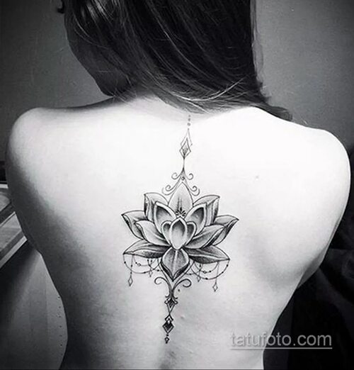 Традиционные татуировки лотоса имеют свои корни в восточных культурах, особенно в искусстве татуировки Японии. Они обычно представляют лотос в комбинации с другими символами, такими как драконы или карпы. Этот стиль татуировки может быть ярким и красочным, что создает впечатляющий и выразительный образ на спине женщины.