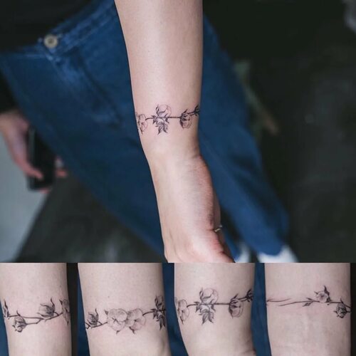 Девушки могут выбирать татуировки в виде браслета на руке, чтобы выразить свои личные ценности и символы. Это может быть любимый цветок, животное или другой символ, имеющий особое значение для них.