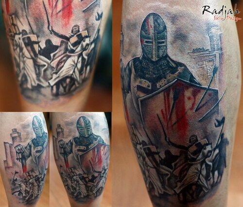 Одним из ключевых элементов рыцарской татуировки является изображение доспехов. Коричневый металл, покрытый ржавчиной, полированный до блеска или величественно золотой – дизайн доспехов может быть разнообразным. Рыцарский доспех может символизировать защиту, силу и готовность преодолеть любые трудности на пути к победе.