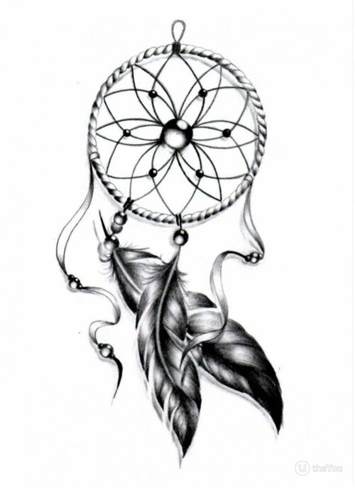 2. Ловец снов с перьями: символика перьев в ловце снов добавляет дополнительный смысл и элегантность. Этот эскиз может быть выполнен в разных стилях и размерах, дополняя ваш индивидуальный стиль и вкус.
