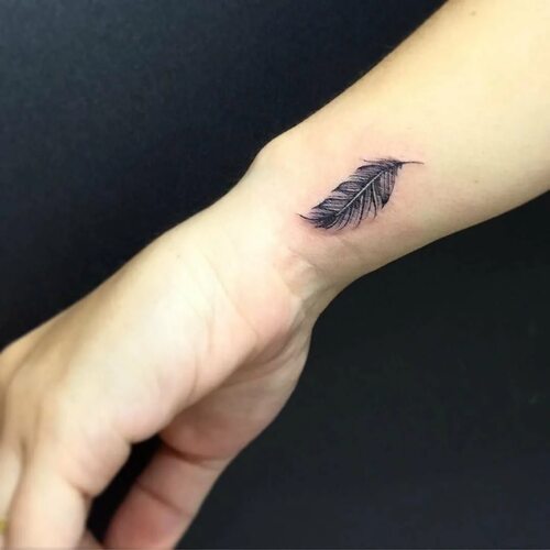 Минималистический стиль подразумевает простые, чистые линии и маленький размер татуировки. Тату пера в минималистическом стиле может быть очень элегантной и изящной, придавая запястью женственный и стильный вид.