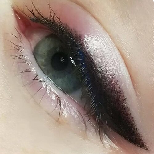 Процесс нанесения татуировки стрелка на глазах с растушевкой