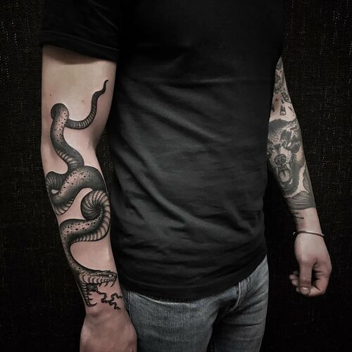 Если вы решили выбрать татуировку с изображением змеи на предплечье, но еще не определились с дизайном, предлагаем вам ознакомиться с некоторыми фотографиями, чтобы найти вдохновение и идеи для своей уникальной татуировки. Внизу вы найдете галерею с различными вариациями татуировок с змеей на предплечье.