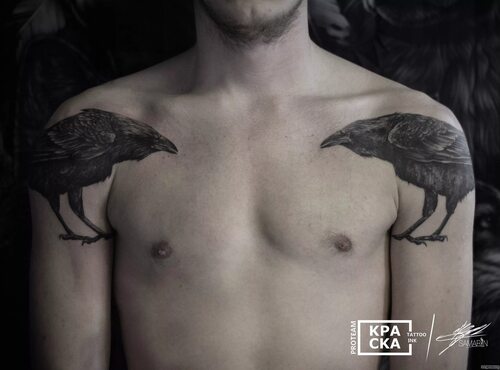 Вдохновляющие фотографии татуировок с воронами на плечах