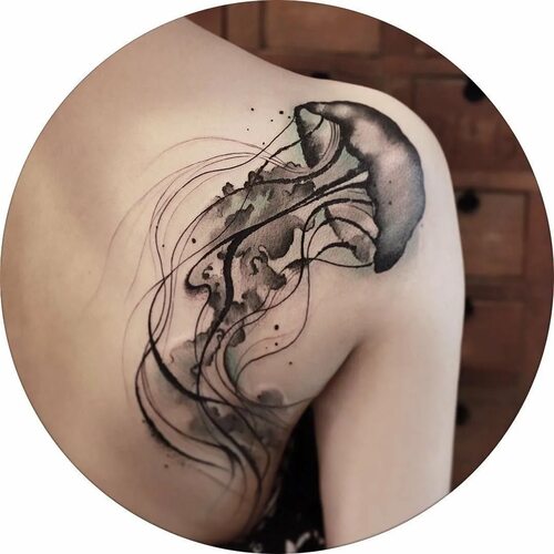 Медуза - это морское существо, которое обладает изящной и элегантной внешностью, но в то же время может быть опасным и ядовитым. Она ассоциируется с глубинами океана, загадочностью и таинственностью. Татуировка медузы может символизировать следующие идеи:
