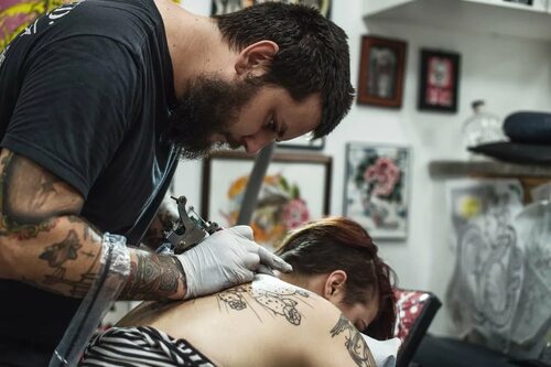 Сам сеанс татуировки начинается с нанесения контуров дизайна на кожу. Татуировщик использует специальную машинку с иглой, чтобы внести пигмент в верхний слой кожи. Во время процесса может быть небольшое неприятное ощущение, но большинство людей описывают его как "выносимую боль". Татуировщик работает аккуратно и внимательно, чтобы добиться высокого качества и точности татуировки.