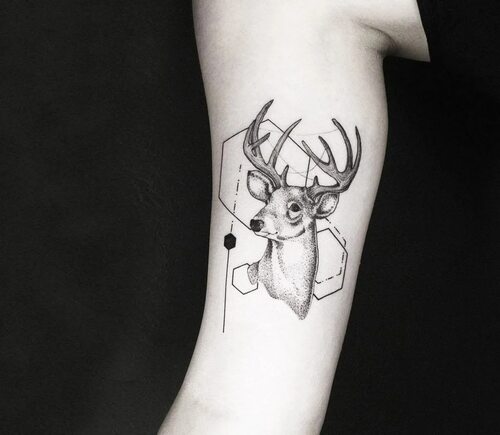 Если вам нравится сочетание геометрии и зеленого оленя, то вам понравятся эти геометрические татуировки. Они объединяют строгость и симметрию геометрических форм с прекрасной грацией зеленых оленей.