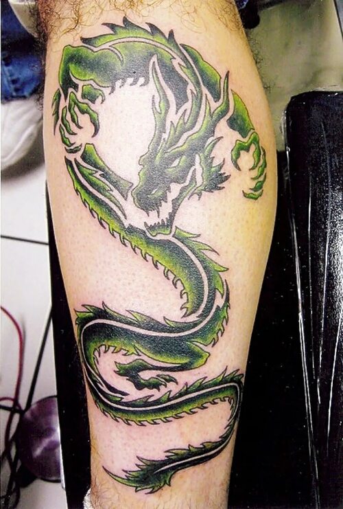 - Реалистичный стиль: в этом стиле татуировка зеленый дракон выглядит почти фотографической и создает иллюзию, будто дракон оживает на вашей коже.
