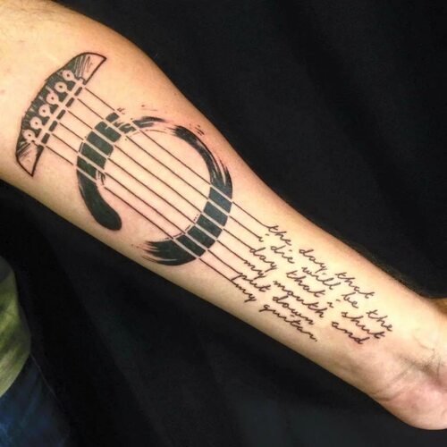 Существует несколько популярных позиций для татуировки гитары на руке: