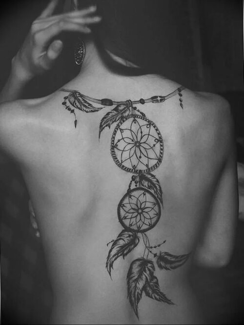 Татуировки в стиле Ловец снов на спине могут быть оригинальными и индивидуальными. Варианты дизайна могут включать: