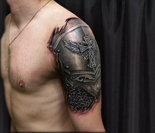 Военные доспехи также являются популярной темой для мужских татуировок в стиле доспехов. Они символизируют силу и готовность к борьбе. Военные доспехи могут быть представлены в различных вариациях - от древних римских лорик до современных бронежилетов. Эти татуировки отражают воинственный дух и решимость мужчины.
