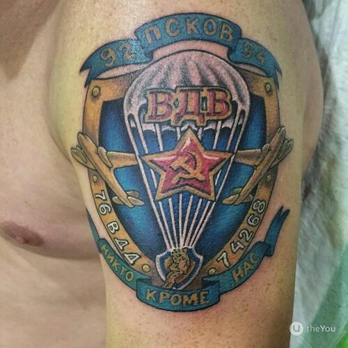 Татуировки, посвященные ВДВ, могут быть разнообразными и неповторимыми, отражая различные аспекты и символы, связанные с этим подразделением. Они могут включать в себя изображения парашютистов, символику ВДВ, гербы, военную технику и другие элементы, которые являются визуальным признаком смелости и отваги.