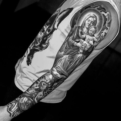 Татуировки мужские рукав религиозные представляют собой мощный и впечатляющий способ выразить свою веру и духовность. Они могут быть выполнены в различных стилях и содержать разнообразные символы, отражающие религиозные убеждения. Важно выбирать мотивы с уважением к своим и чужим верованиям, чтобы создать татуировку, которая будет не только красивой, но и имеющей глубокий смысл.