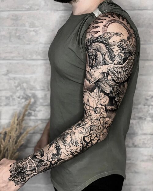 Абстрактные дизайны предлагают безграничные возможности для творчества. Вы можете выбрать абстрактные узоры, линии или формы, которые создадут уникальный и необычный вид рукава. Этот стиль татуировок подходит для тех, кто любит экспериментировать и быть оригинальным.