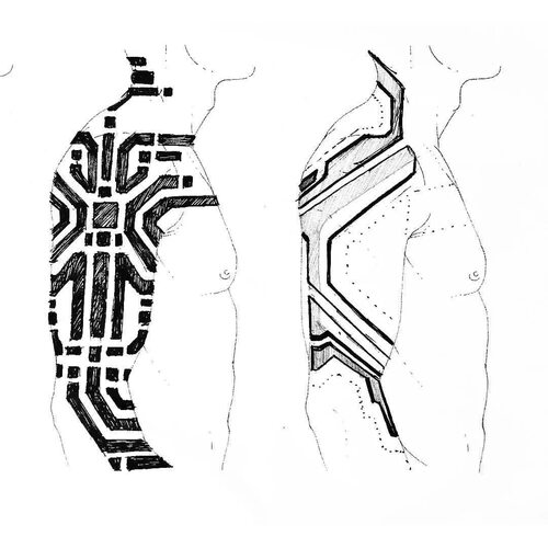 В этой статье мы представим вам несколько эскизов футуристических мужских татуировок. На фотографиях вы увидите разнообразные варианты: от минималистичных и абстрактных дизайнов до полноцветных и детализированных произведений искусства. Мы надеемся, что эти эскизы вам понравятся и вдохновят на создание собственной футуристической татуировки.