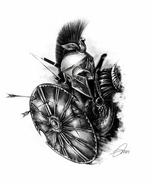 Татуировка воина-воителя отображает мужество, силу и бесстрашие. Воин может быть представлен в полном вооружении, готовый сражаться и побеждать в любой ситуации.