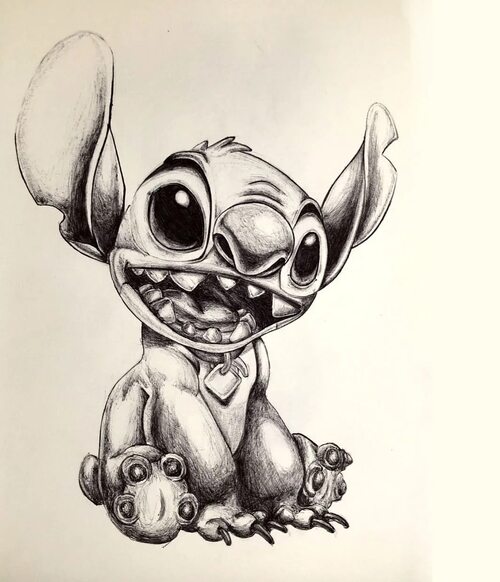 Стиль стич получил свое название, исходя из персонажа анимационного фильма "Лило и Стич". Этот персонаж представляет собой синтез мультяшности и готического дизайна. Татуировки в стиле стич вобрали в себя его узнаваемые черты: большие глаза, острые зубы и колючие уши.