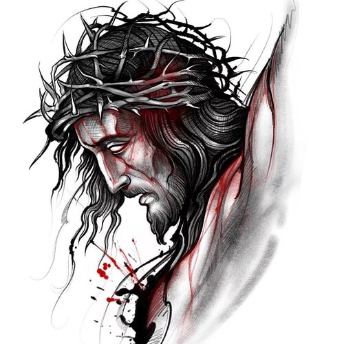 Татуировка Иисуса Христа в классическом стиле обычно представляет Христа с короной тернового венца на голове и распятого на кресте. Этот стиль акцентирует внимание на страданиях и жертве, которые Христос принес для спасения человечества.