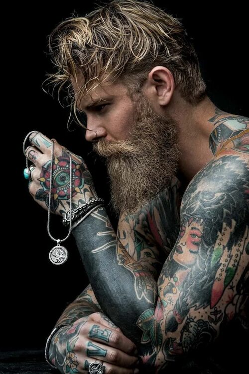 Борода и татуировки - это два основных элемента стиля мужчины, которые с каждым годом становятся все популярнее. Борода придает лицу мужественность и интригу, а татуировки становятся канвасом для самовыражения. Вместе они создают уникальный образ, который отражает характер и внутренний мир мужчины.