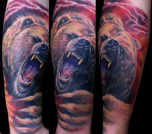 Медведь часто ассоциируется с дикой природой и лесом. Татуировка с изображением медведя и природы может быть очень красивой и символичной. Вы можете включить в дизайн деревья, горы, реку или другие элементы природы, чтобы создать впечатляющий образ.