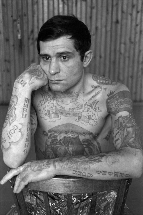 Татуировки, связанные с воровским авторитетом, также являются характерными для блатной культуры. Они часто включают в себя изображения карточных мастей, короны, заключенных в наручниках и т.д. Эти татуировки служат как символы статуса и принадлежности к криминальному миру. Представленные ниже фотографии наглядно демонстрируют разнообразие таких татуировок: