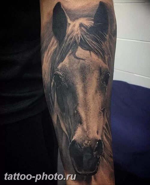 Портрет лошади. Реалистичный портрет лошади может быть великолепным выбором для татуировки. Вы можете выбрать портрет своей любимой породы или просто воссоздать изображение лошади, которая вам нравится.