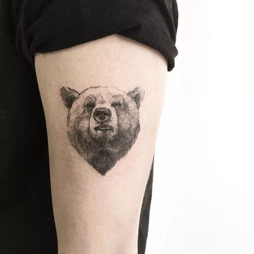 Медведь - символ силы, мудрости и защиты. Он воплощает природную мощь и величие, а также может быть связан с племенной и духовной символикой. Маленькая татуировка с изображением медведя может быть нежной и элегантной, при этом сохраняя в себе всю силу и символику этого великого животного.