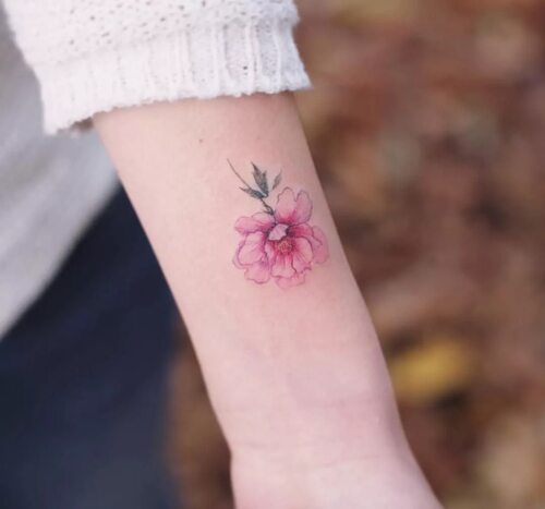 Пион — это цветок, который ассоциируется с изобилием, процветанием и счастьем. Татуировка пиона на руке может быть символом процветания и женственности.