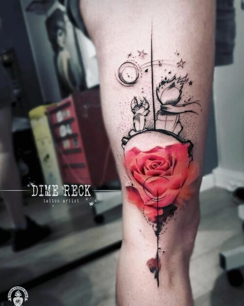 Татуировка "Маленький принц" и роза - это мощный и символичный выбор для тех, кто ценит историю, красоту и нежность. Она может служить как напоминание о детстве и простоте, так и о значимости любви и заботы.