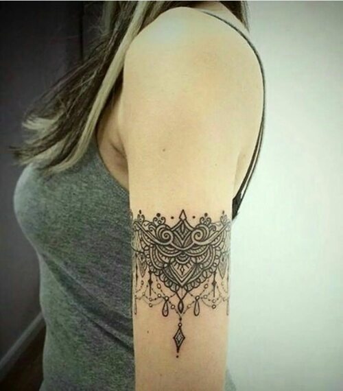 Татуировка браслета на плече может быть выполнена различными техниками, включая: