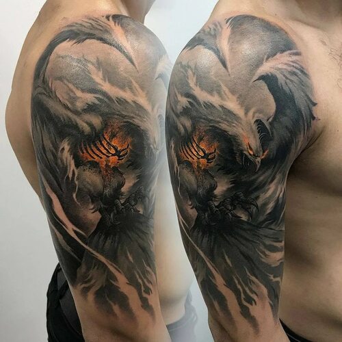 Татуировки в виде животных, таких как львы, волки или орлы, могут символизировать силу, мужество или свободу. Эти изображения могут быть очень детализированными и впечатляющими на плече.