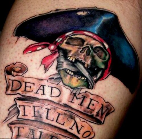 Еще одной интересной идеей для татуировки "Пираты на плечо с надписями" является изображение головы пирата с соответствующей надписью. Вы можете выбрать стилизацию в виде карикатурного рисунка или же более реалистичного изображения. Надпись может быть выражением пиратской философии, мотивационной фразой или именем знаменитого пирата.
