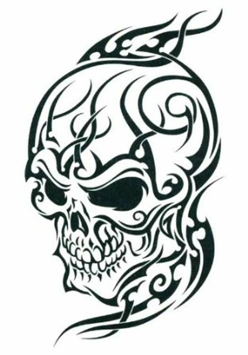 Череп в татуировках считается одним из самых мощных символов. Он может быть интерпретирован по-разному: от образа смерти и мистики до символа силы и бессмертия. Череп в трайбле добавляет этому символу дополнительную загадочность и уникальность.