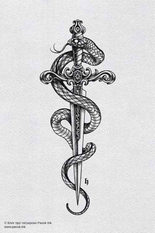 Ниже приведены несколько фотографий татуировок "кортик со змеей", чтобы вас вдохновить и помочь вам выбрать подходящий дизайн: