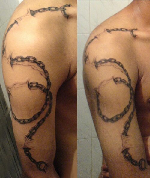 Реалистичные татуировки цепей имеют высокую степень детализации и создают иллюзию реальных цепей, будто они фактически присутствуют на коже. Использование тонких линий, теней и осветления помогает достичь высокой степени реализма в этом стиле.