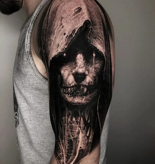 Одним из популярных направлений в страшных татуировках являются дизайны, связанные с тематикой ужасов и мистики. Эти татуировки могут изображать зловещих монстров, зомби, призраков, вампиров и других мифических существ. Они великолепно передают атмосферу страха и тревоги. Если вы любите ужастики и необычные истории, такая татуировка подойдет вам на все сто.