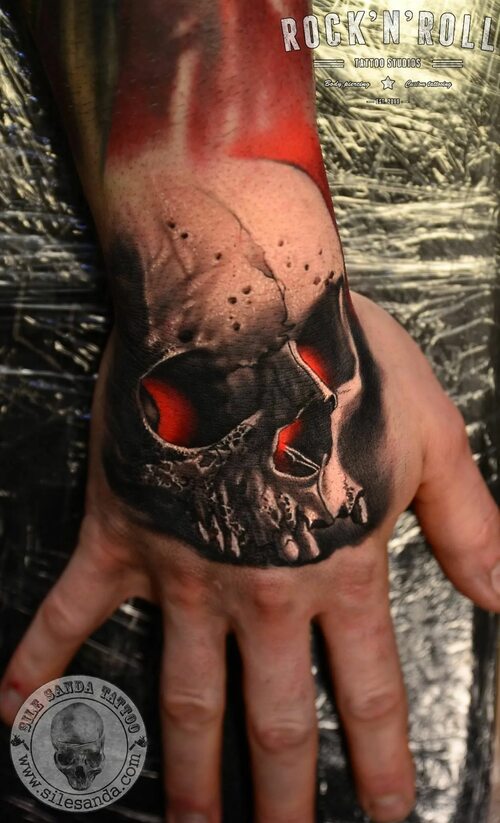 Выбор татуировки рубинового черепа на кисти на пальцах