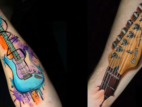 Один из популярных стилей, в котором часто делают татуировки с изображением рок гитары, - это реализм. В этом стиле татуировка выглядит так реалистично, что кажется, будто гитара нарисована прямо на вашей коже. Тщательное воссоздание деталей и теней позволяет создать очень выразительное изображение.