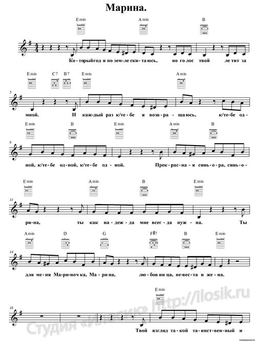 - E7 (Ми септима) - повторяем этот аккорд из припева.