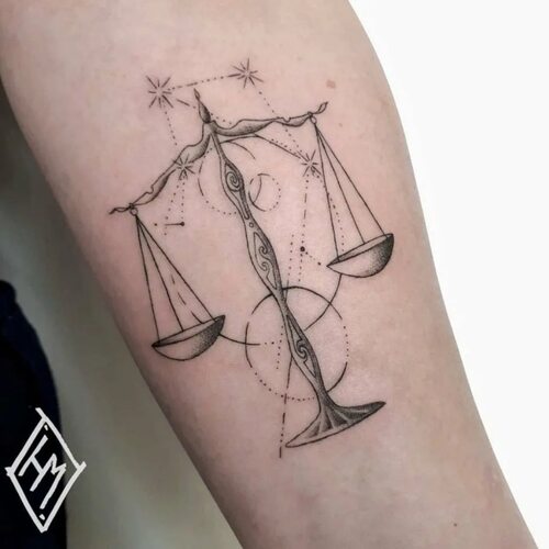 В графическом стиле татуировки с изображением весов могут быть выполнены в виде абстрактных линий и геометрических форм, создавая эффектное и современное визуальное впечатление. Этот стиль подходит для тех, кто стремится к простоте и минимализму.
