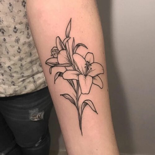 Графический стиль татуировок лилии характеризуется использованием четких линий и геометрических форм. Этот стиль позволяет создать абстрактный образ лилии, добавляя остроту и современность в дизайн.