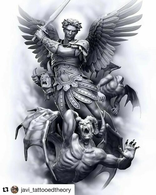 Другие дизайны татуировок с архангелом Михаилом включают его изображение в боевом положении, с мечом в руке и поднятым щитом. Этот стиль выражает решимость и готовность к защите от зла. Такая татуировка может быть выполнена как в реалистичном стиле, так и в стиле графики или традиционного искусства.